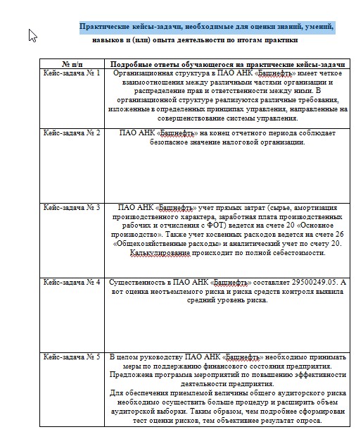 | Кейс-задача № 4 | Существенность в ПАО АНК «Башнефть» составляет 29500249.05. А вот оценка неотъемлемого риска и риска средств контроля выявила средний уровень риска. |