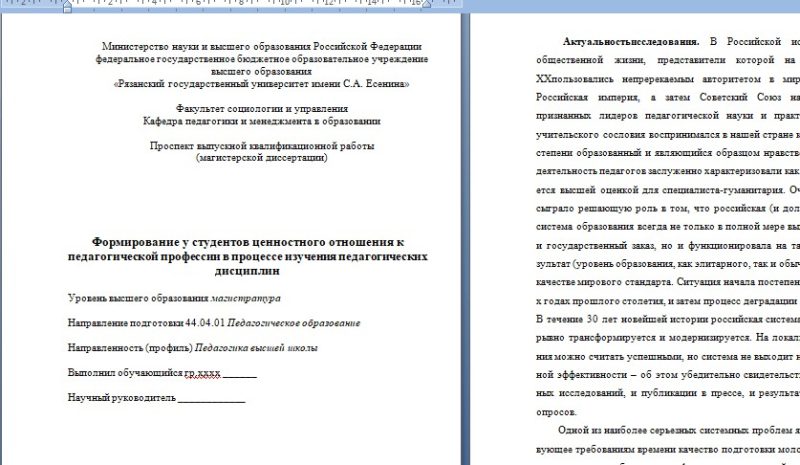 Проспект выпускной квалификационной работы (магистерской диссертации)